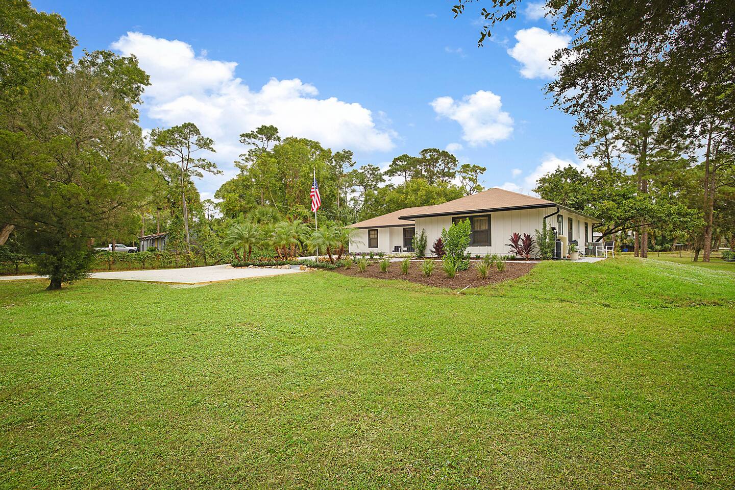 Welcome to the Acreage in RPB. Available is a 1 bed, 1 bath entire unit. As part of a separate dual residence, located on the main home’s east side, you will have the entire space to yourself, surrounded by lush landscaping to provide a peaceful retreat. This unit has a full-size granite kitchen with a living area & a queen-sized bed located in the separate bedroom. Internet & W/D in unit. Private parking, W/brick walkway/patio to main entrance. Storage shed provided. NO PETS ALLOWED.