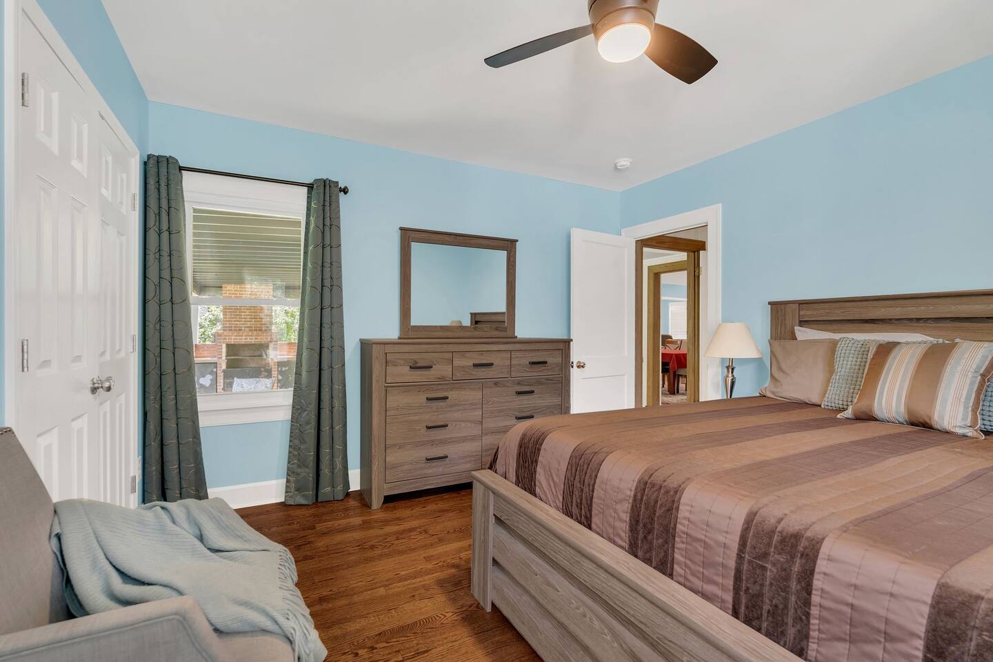 Location meets comfort in this 4BDR home nestled in a mature, shady neighborhood full of Southern charm. Walk to MTSU, the square, restaurants, and coffee shops! Enjoy a fully equipped kitchen, free parking, Wi-Fi, and space for the whole group. The fenced yard is perfect for your dogs. Unwind on the patio with a BBQ grill after a day out. Just 30 miles from Nashville, this home blends comfort, location, and charm—your perfect home away from home!