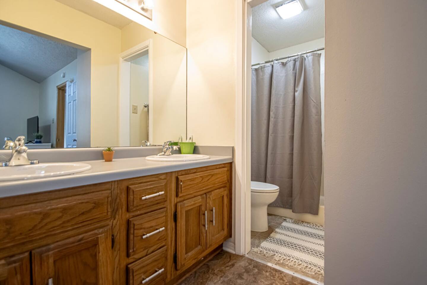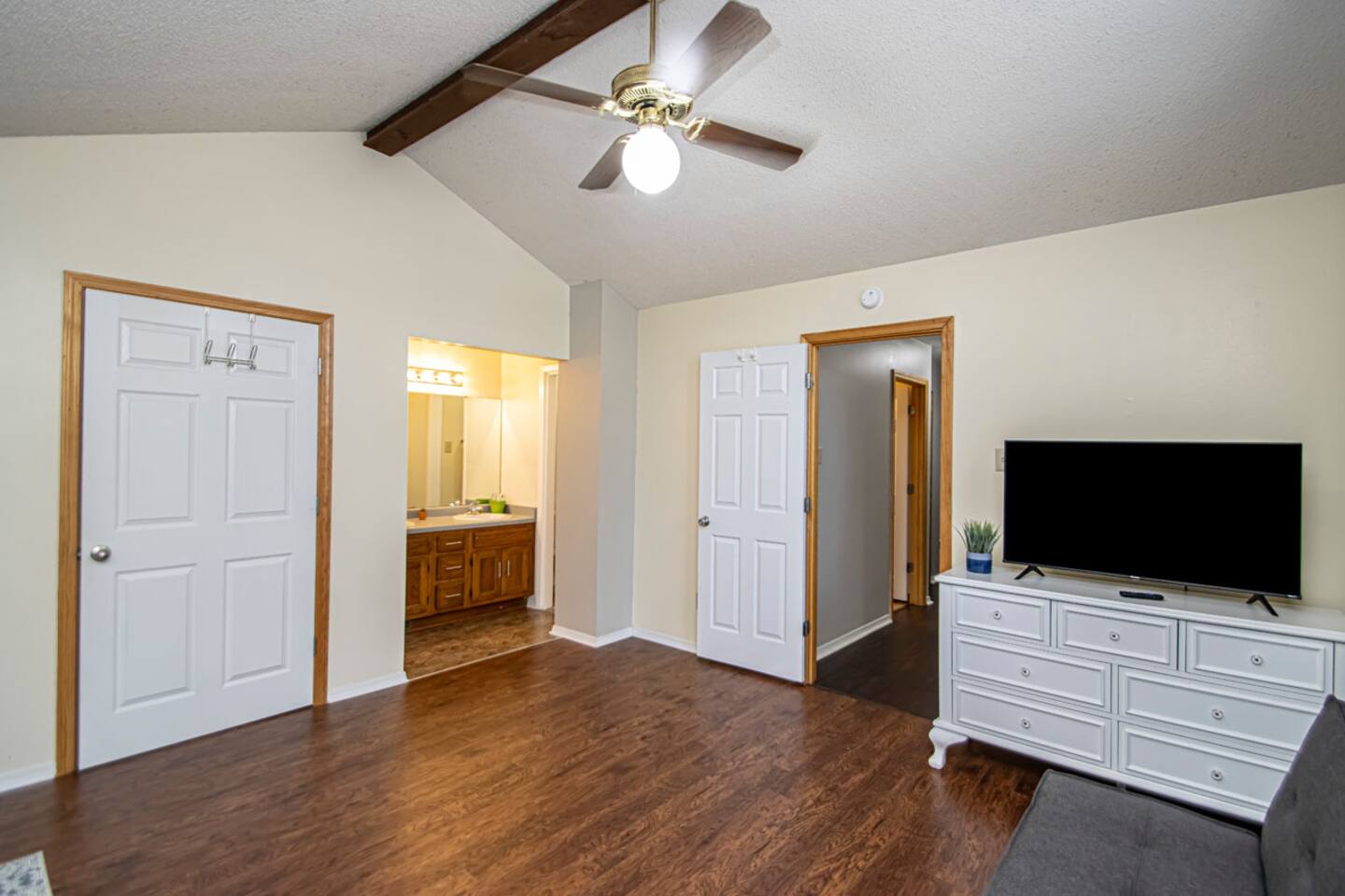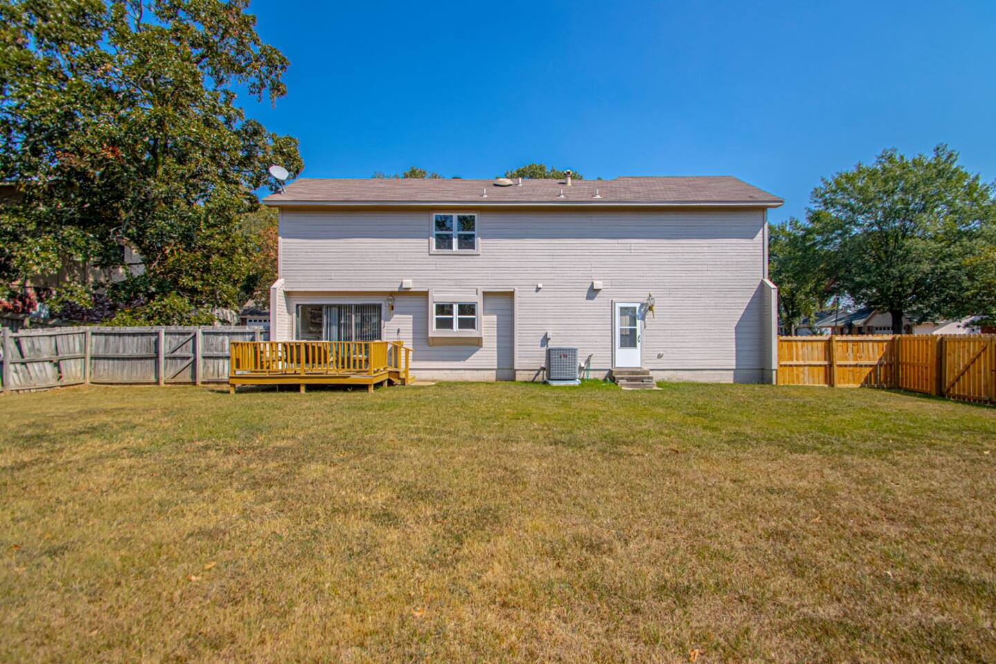 You will have a private driveway with an large two-garage making this perfect for a long stay. The home is fully equipped to ensure you will have all you need for your visit. This is a two-story home. The upstairs has a huge master, with two additional bedrooms with two bathrooms. The downstairs has a nice living room with another half bathroom. You walk outside to a nice deck that overlooks a huge fenced in yard for your furry friends. All the amenities are available for a peaceful stay to include: *All kitchen dishware, appliances and tools needed to cook or entertain on the backyard deck. *High-speed Internet *Private master bathroom, with two additional bathrooms *Soaps and shampoos *Extra linens *Ironing board *Hair dryer *Plenty of seating in the living room with a kitchen table that seats six *Patio furniture *Fenced in yard *Washer and dryer *Smart TVs in living room and master bedroom