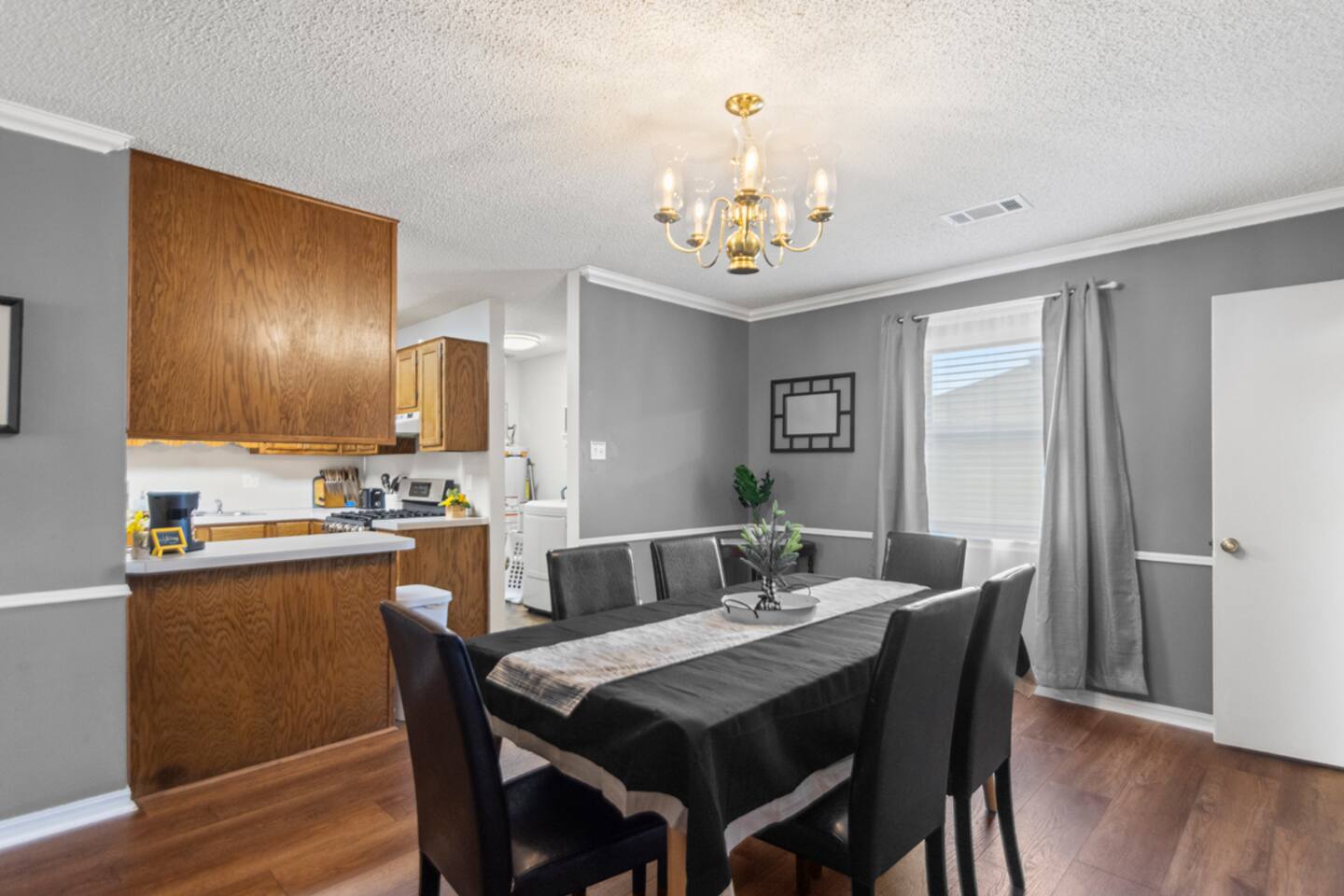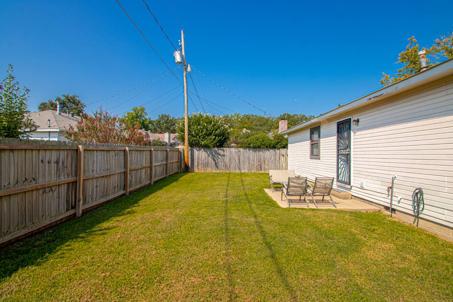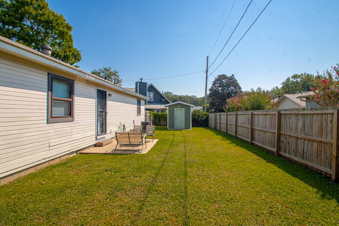 This is a 3bdr with 2 full baths home. When you pull up, you will have a carport for parking. When entering the home, you come into a spacious living-room and can enjoy the smart TV. You will enter the kitchen that has a laundry room off the kitchen and you can exit to the fully fenced in backyard with furniture on the patio to relax. With the bedrooms and bathrooms on the other side of the home, there is privacy for all. This is a very quiet, family friendly neighborhood. This area is very popular being so close to everything and coming home to an area that feels like home!